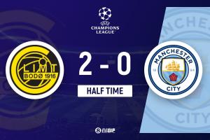 體育資訊1月21日訊 北京時間1:45,歐冠聯(lián)賽階段第7輪博德閃耀vs曼城,比賽在阿斯米拉體育場打響!上半場,阿萊恩被斷送禮,布隆伯格兩送助攻,霍格2分鐘梅開二度。半場結(jié)束,曼城暫0-2落后博德閃耀。