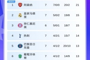 第7輪首個比賽日過后,阿森納7戰(zhàn)全勝領(lǐng)跑,皇馬暫升第2,曼城不敵博德閃耀后跌至第7,國米遭遇三連敗后跌出前8,暫時來到第9位。