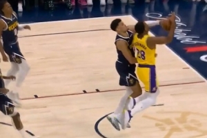 GIF-八村塁反擊被斯潘塞·瓊斯帽掉,裁判吹掘金球權,湖人挑戰(zhàn)失敗