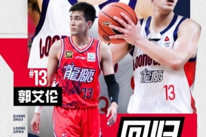 郭艾倫將于1月23日廣州龍獅主場對陣南京的比賽正式復(fù)出!