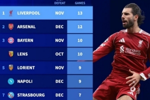 體育資訊1月22日訊 在本輪歐冠,利物浦3-0完勝馬賽,近13場各項賽事保持不敗。德轉盤點了目前五大聯(lián)賽球隊各項賽事現(xiàn)存最長不敗場次榜,具體如下:
