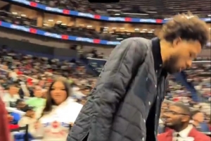 CC在球迷的MVP歡呼聲中帥氣入場(chǎng),被絆了一下,對(duì)拍攝的球迷說:這段你最好給剪掉??