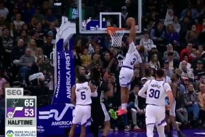 沖擊力十足!阿門(mén)上半場(chǎng)13中6得到14分6板3助 得分全隊(duì)最高