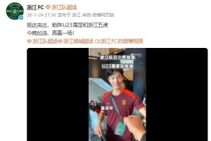 體育資訊1月24日訊 今晚U23亞洲杯決賽,U23國足將與日本U23隊爭冠。賽前,浙江隊社媒曬出為中國隊助威的視頻,前方人員與來自浙江隊的五人進行擊拳。