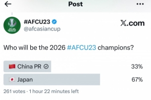 亞足聯(lián)官推發(fā)起了對最終奪冠球隊預測的投票,其中33%的球迷支持U23國足奪冠,67%的球迷更看好日本U23奪冠。