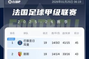 最新的積分榜方面:巴黎時隔多輪再次奪回榜首,目前2分領跑;朗斯本輪不敵馬賽跌至第2名,馬賽則是繼續(xù)排名第3。