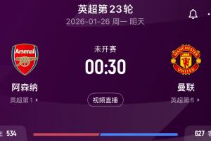 曼聯暫排第五只落后利物浦1分,此前曼聯就有多次機會取勝即進前四,但都沒有把握住,不過這輪他們的對手是榜首阿森納。
