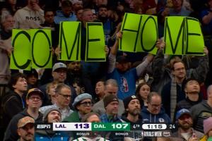 獨(dú)行俠球迷對(duì)著東契奇舉大標(biāo)語(yǔ):Come Home(回家吧)!