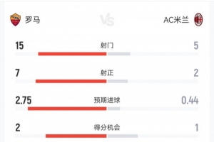 體育資訊1月26日訊 本輪意甲,羅馬1-1米蘭。雙方全場(chǎng)重點(diǎn)數(shù)據(jù)對(duì)比如下↓(主隊(duì)羅馬在前)