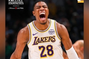 詹姆斯轉(zhuǎn)發(fā)了八村塁在昨日客場擊敗獨行俠比賽中命中關(guān)鍵三分的怒吼慶祝照,并寫道:“大心臟黑武士????”