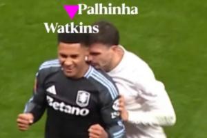在終場(chǎng)哨聲吹響后,維拉前鋒沃特金斯來到底線面向看臺(tái)慶祝,看似有意無意的身體接觸惹惱了帕利尼亞,后者將沃特金斯推搡出場(chǎng)外,瞬間點(diǎn)燃兩隊(duì)球員的情緒。
