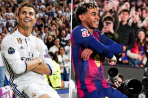 隨后亞馬爾坐在了場邊的廣告牌上,雙手抱在胸前來慶祝這個進球。這樣的慶祝動作與C羅效力皇馬時期曾做出的經(jīng)典慶祝動作極為相似。
