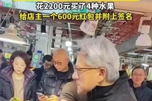 近日,英偉達(dá)CEO黃仁勛現(xiàn)身上海陸家嘴街道乳山路錦德菜市場。水果店老板劉先生稱,黃仁勛很低調(diào),很有親和力,很愿意和大家合影?!拔蚁霂兔ο匆幌滤?,不讓我洗,自己拿起來就吃。”劉先生說,黃仁勛在他的店里買了2200元的水果,給一個600元的紅包,還附上簽名。