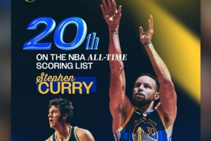 賽前庫里距離歷史第十九的哈弗里切克還差24分,庫里今日轟下26分,總得分來到26397分,得分榜超越第20的哈弗里切克,追上第19的皮爾斯,和皮爾斯并列歷史第十九。