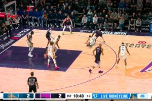 太輕松!東契奇弧頂被包夾后分球 艾頓沖擊內(nèi)線飛身暴扣