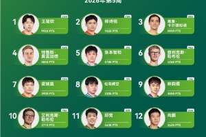 WTT常規(guī)挑戰(zhàn)賽馬斯喀特站男單冠軍溫瑞博排名上升7個(gè)名次位列第24,刷新個(gè)人職業(yè)生涯排名新高;亞軍帕特里克·弗朗西斯卡排名上升1個(gè)名次位列第19;八強(qiáng)黃鎮(zhèn)廷排名上升13個(gè)名次位列第45。