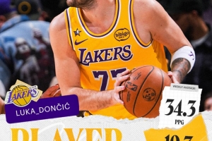 體育資訊1月27日訊 今日NBA官方宣布,湖人球星盧卡·東契奇當選本賽季第14周西部周最佳球員。