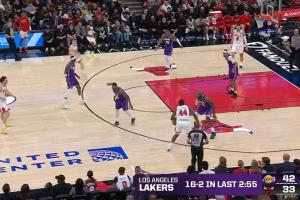 兩記三分+搶斷暴扣!詹姆斯首節(jié)8分鐘3中3砍下8分1搶斷