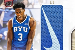 球星卡Topps官方社媒表示:“迪班薩在砍下43分那場(chǎng)比賽所穿球褲上的Nike Swoosh Logo已經(jīng)被裁剪下來(lái),制作成了一張1-of-1的親筆簽名球星卡。”
