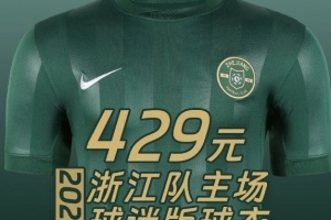 體育資訊1月28日訊 根據(jù)浙江足球俱樂部官方的消息,浙江隊新賽季主場球迷版球衣的會員售價為429元。