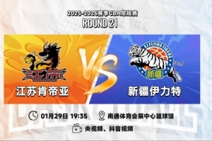 1月29日19:35,2025-26賽季CBA常規(guī)賽第二十一輪,江蘇肯帝亞將回到主場南通體育會展中心籃球館,迎來與新疆伊力特的三番戰(zhàn)。