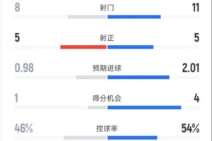 全場(chǎng)比賽數(shù)據(jù)如下: