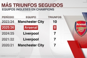 以下為英超球隊在歐冠連勝紀錄榜: