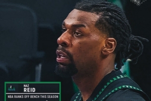 體育資訊1月29日訊 森林狼官推更新,曬出了前鋒納茲·里德的幾項(xiàng)數(shù)據(jù):