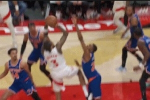 GIF-英格拉姆后仰跳投踢到布里奇斯腹部被吹進攻犯規(guī)