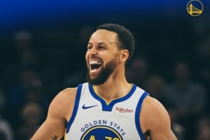 賽后勇士發(fā)布贏球海報(bào),封面為庫里大笑瞬間。