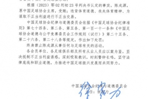 各會員單位、各足球俱樂部及所有從業(yè)人員應以案為鑒,堅決抵制不正當利益誘惑,深刻吸取教訓,時刻警鐘長鳴,堅守法律底線和職業(yè)道德,為推進中國足球振興發(fā)展而共同努力。