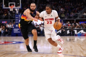 活塞本賽季至今戰(zhàn)績?yōu)?4勝11負(fù),穩(wěn)居?xùn)|部第一,球隊場均得117.2分,場均失110分。上場比賽,活塞客場109-107險勝掘金,坎寧安22分11助攻,托拜亞斯·哈里斯22分8籃板,奧薩爾·湯普森14分4籃板5搶斷,杰倫·杜倫14分8籃板。進(jìn)入2026年以來,活塞9勝3負(fù),戰(zhàn)績僅次于快船。主帥比克斯塔夫打造的陣容攻防表現(xiàn)俱佳,其中防守效率僅次于雷霆, 球隊場均搶斷、蓋帽數(shù)據(jù)均排名全聯(lián)盟第一?;钊麍鼍敢?guī)22.6次同樣位列全聯(lián)盟首位,這也側(cè)面證明了球隊防守強(qiáng)悍。活塞的弱點在于不太擅長外線投射,此外失誤有些居高不下。本場卡里斯·勒韋爾確定無法出場。