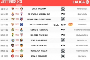 體育資訊1月29日訊 西甲官方公布了第24輪比賽的開球時間,2月15日4點皇馬vs皇家社會,2月17日4點赫羅納vs巴薩。