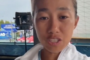 張帥賽后感謝球迷:“哈嘍大家好,我是張帥。我現(xiàn)在在墨爾本的澳網(wǎng)。我和梅爾滕斯,我們剛剛贏得了女雙半決賽,然后進(jìn)入到了決賽。這是我們兩個(gè)人第二次參加大滿貫的比賽一起,然后第二次打入決賽。