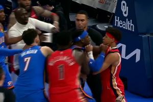 在此前雷霆主場104-95戰(zhàn)勝鵜鶘的比賽中最后一攻費(fèi)爾斯上籃和多特有糾纏,多特推搡之后兩人開啟沖突,互相揪衣領(lǐng),引發(fā)雙方球員大沖突。此后,費(fèi)爾斯有試圖加劇沖突,多次沖鋒被攔,隨后他被鵜鶘工作人員一路攔回了更衣室。