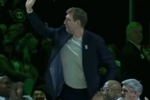 GIF-獨(dú)行俠舉行阿吉雷球衣退役 諾維斯基到場(chǎng)被介紹掌聲雷動(dòng)