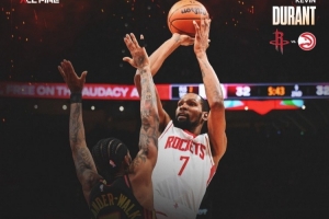 賽后,火箭官方曬出杜蘭特的數(shù)據(jù)海報,并寫道:“杜蘭特再次拿出看家本領(lǐng),砍下又一個30+?!?/p>