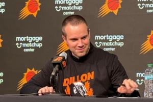 體育資訊1月30日訊 太陽114-96輕取活塞。賽后,太陽主帥奧特穿著印有“狄龍大反派”字樣的定制T恤接受媒體采訪。太陽本場安排發(fā)放了5000件印有“狄龍大反派”的T恤,狄龍本場得到40分,刷新個(gè)人生涯新高。