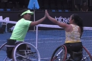 體育資訊1月30日訊 澳網(wǎng)輪椅組女雙決賽,頭號種子王紫瑩/李曉輝2-0擊敗2號種子朱珍珍/上地結(jié)衣,衛(wèi)冕澳網(wǎng)冠軍。