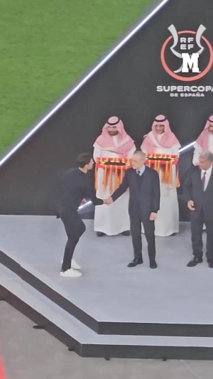 馬卡報配文:這是弗洛倫蒂諾和阿隆索在西超杯決賽失利后冷淡的擁抱。在輸給巴薩后,阿隆索也沒有得到球隊的多少支持。