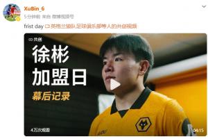 體育資訊01月31日訊 昨日狼隊(duì)正式官宣徐彬加盟,今日徐彬在個人微博發(fā)布加盟狼隊(duì)幕后花絮視頻,配文寫道:“第一天”。