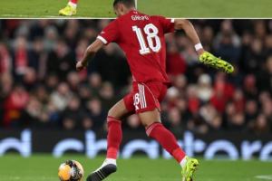體育資訊01月13日訊 足總杯第3輪,利物浦4-1擊敗巴恩斯利。比賽中出現(xiàn)了有趣的一幕,利物浦邊鋒加克波一只腳沒穿鞋參與反擊。