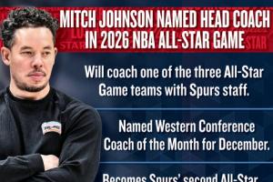 今天兩場比賽過后,馬刺確定西部第二席位。馬刺主帥米奇·約翰遜確認(rèn)獲得全明星主帥資格,他將執(zhí)教美國VS世界的三支球隊(duì)之一。