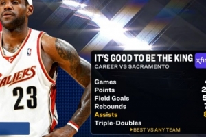 其中,場均8.5次助攻是詹姆斯對陣所有球隊中最高的。
