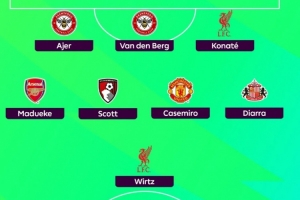 后衛(wèi):阿耶爾(布倫特福德)、范登貝爾赫(布倫特福德)、科納特(利物浦)