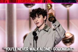 利物浦球迷歐文·庫珀在金球獎獲獎感言環(huán)節(jié)用隊歌“你永遠(yuǎn)不會獨(dú)行”結(jié)尾??