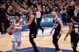 GIF-約基奇對布倫森兇狠犯規(guī)