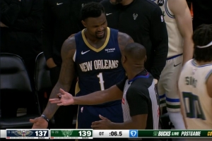 GIF-錫安關(guān)鍵一攻運(yùn)球脫手后撞倒科菲再度被吹進(jìn)攻犯規(guī)