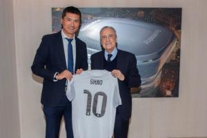 邵佳一與皇馬主席弗洛倫蒂諾合影