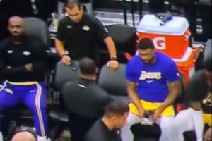 視頻中復(fù)盤的球迷破防:“雷迪克正想對(duì)全隊(duì)講話呢,勒布朗你人在哪?有人看到勒布朗了嗎?原來他在那兒像個(gè)受氣的小媳婦兒一樣撅嘴鬧情緒呢。(Pouting like a little b**ch)”